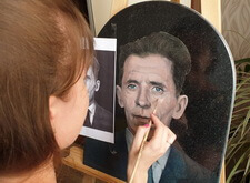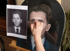 Затем наступил этап детальной прорисовки: первым делом была изображена одежда усопшего, затем – его волосы, с лишь после этого было очерчено лицо. По ходу работы изображение приобретало всё большее сходство с оригинальной фотографией.